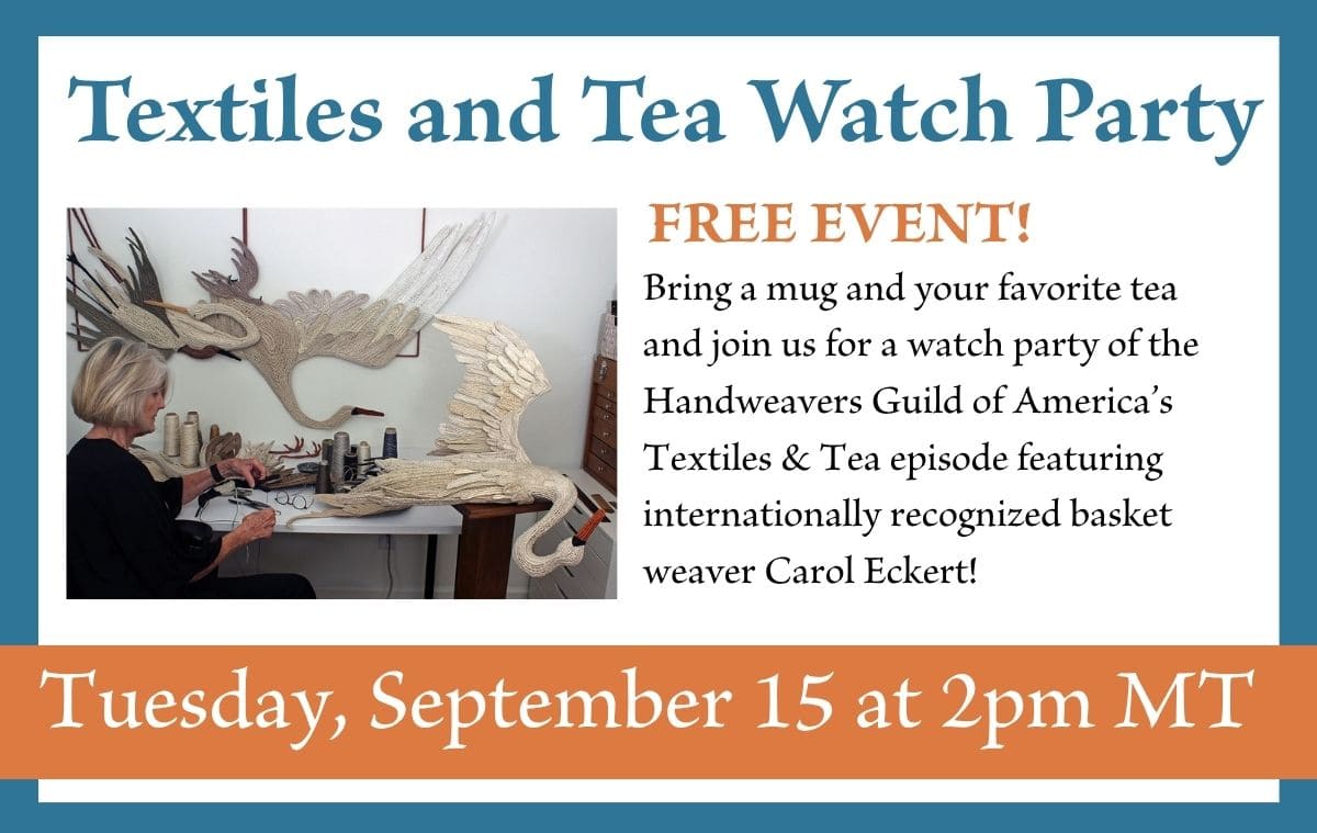 Join us for a watch party of the Handweavers Guild of America’s Textiles & Tea episode featuring contemporary basket weaver and author Carol Eckert!