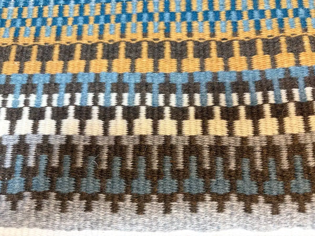 Krokbragd is a traditional Norwegian rug weaving technique historically used for horse blankets, rugs, blankets and wall hangings. The name means “crooked path,” referring to the woven lines the technique produces.